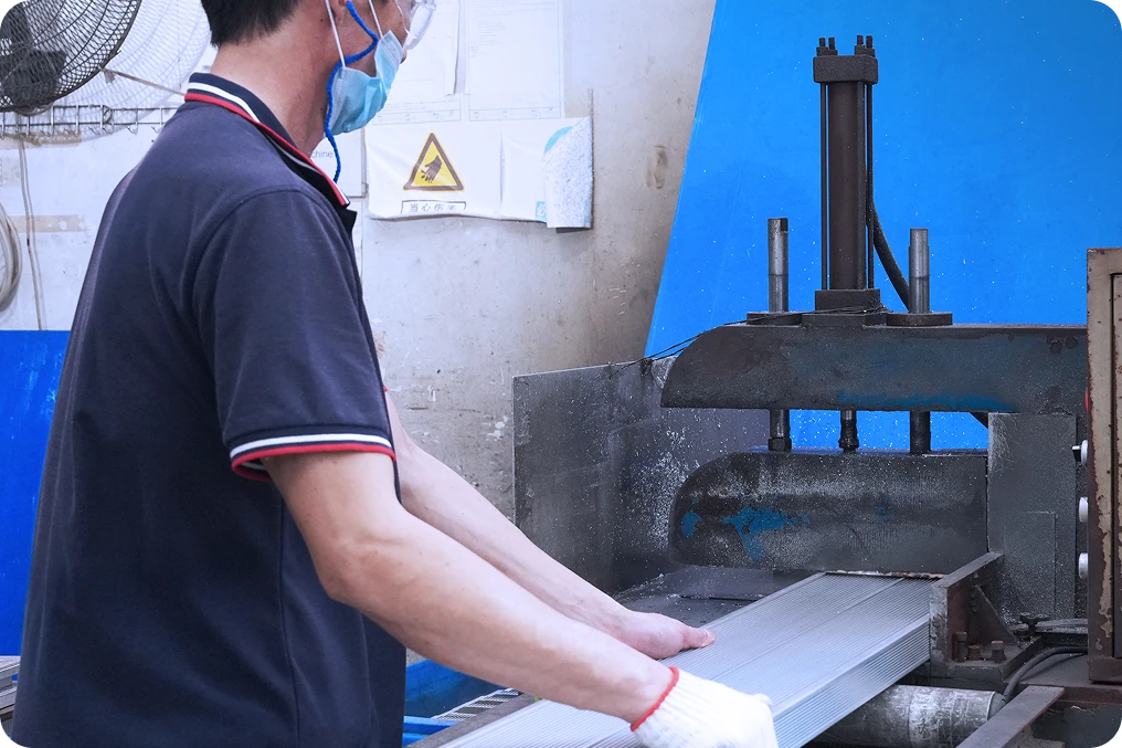 Aluminum is heated to 480-520°C and extruded under high pressure, followed by online quenching to reach ≥75HB hardness.