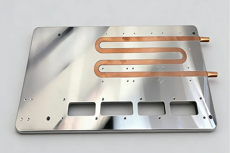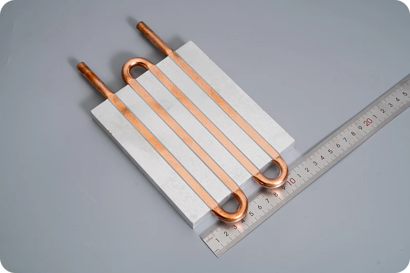 Tube Liquid Cold Plates are constructed by pressing a continuous metal tube (typically Oxygen-Free Copper) into pre-machined channels within a base plate (typically Aluminum 6061/6063).