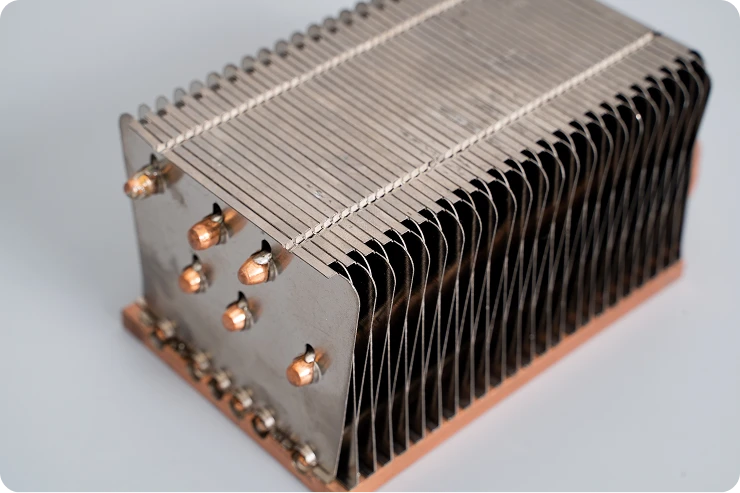 ● The Mechanism: Fins are inserted through the base plate and permanently bonded via soldering, thermal epoxy, or mechanical expansion.